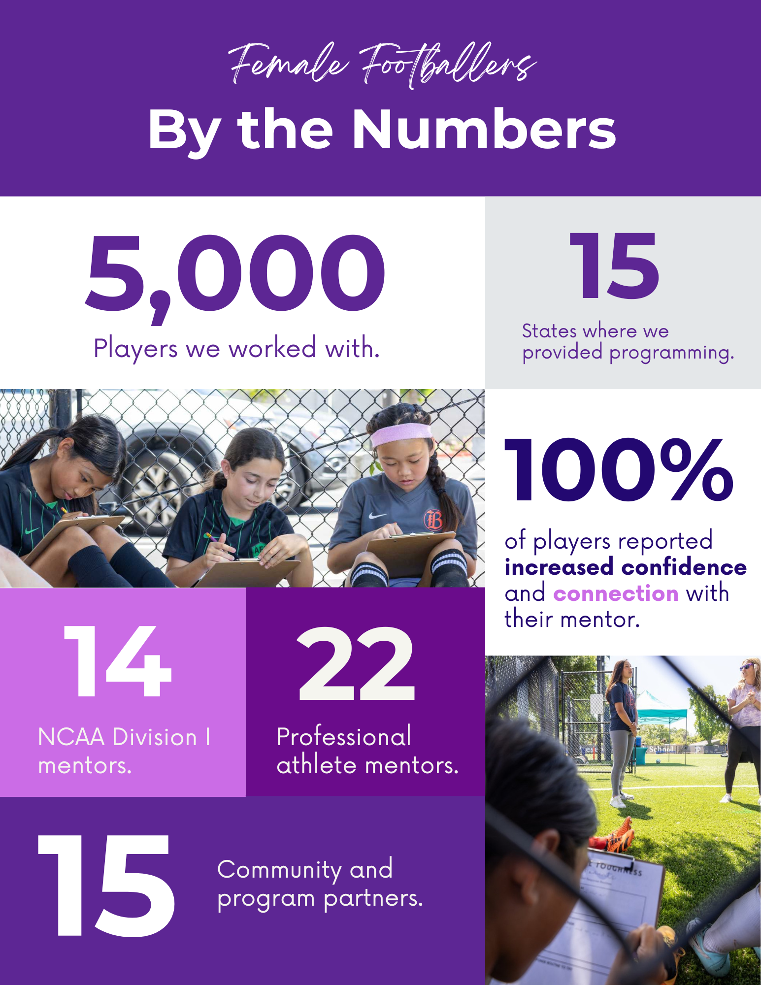 Female Footballers is club neutral. We work with athletes at all levels to ensure players develop social emotional skills specifically around self awareness and self regulation. These skills help prevent mental health crisis when an athlete hits adversity. We are not sports psychologists, we are social emotional educators helping players navigate the challenges that pertain to the female identifying competitive soccer experience.